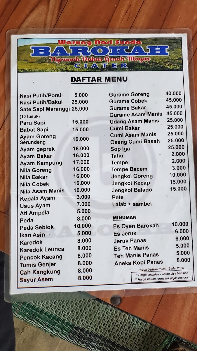 Welcome to Warung Nasi sunda Barokah #Ngeunah dahar genah mayar, a hidden gem nestled in the scenic Ciater area of Subang Regency, West Java. This quaint nasi restaurant is celebrated for its authentic Sundanese cuisine, offering a delightful array of dishes at incredibly affordable prices. Diners rave about the mouthwatering flavors, particularly the sambal, which adds a perfect kick to every meal.